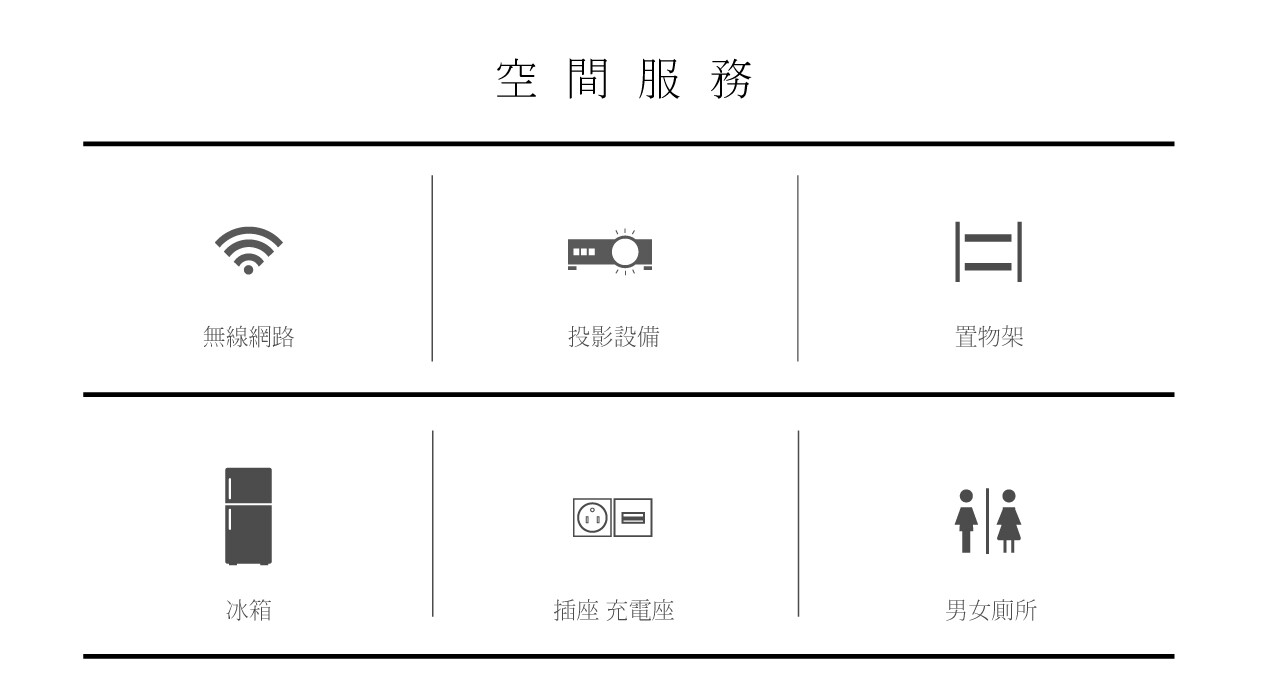 設備:基礎照明(日光燈)、冷氣、洗手間、WIFI、投影設備、冰箱、置物架